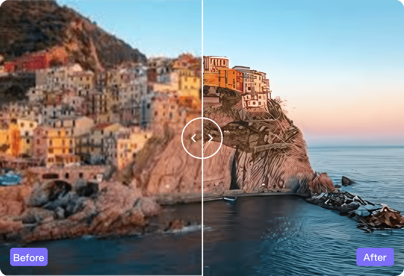 Enlarge your images by 200%, 400%, or even 800% without sacrificing quality. Best for restoring, sharpening, and improving image clarity effortless online for super-resolution
